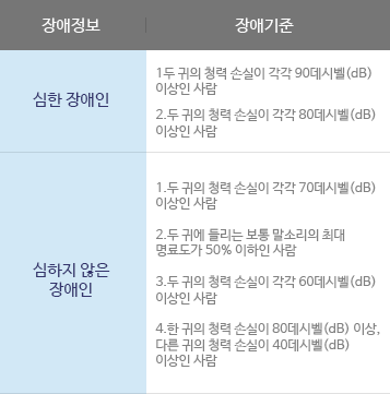 40~59dB ¹üÀ§ÀÇ Ã»°¢Àå¾Öµî±ÞÀ» ¹ÞÁö ¸øÇÏ´Â ³Ã»ÀÌ ÀÖ´Â °æ¿ì.)
